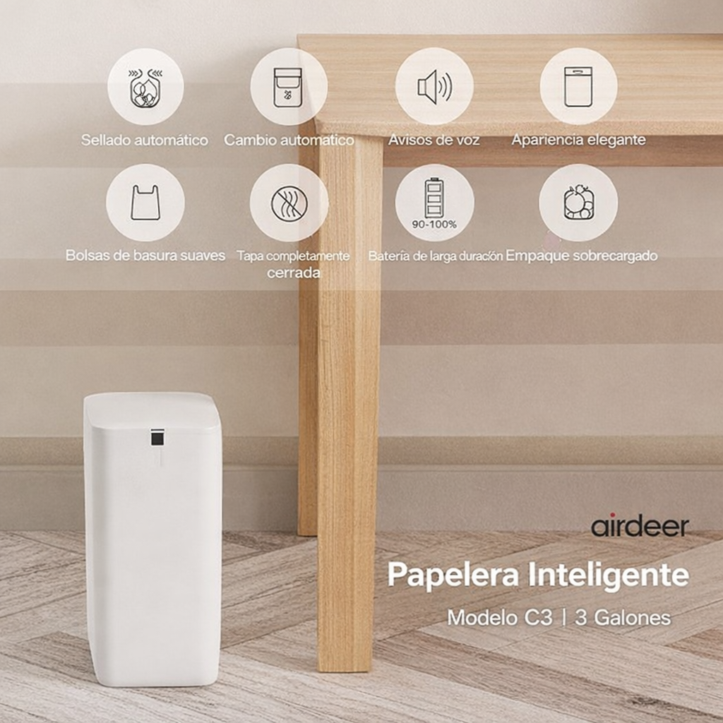 Disfruta de una forma más higiénica y moderna de manejar la basura en tu hogar. Este basurero inteligente está diseñado para ofrecer comodidad, limpieza y tecnología en tu vida diaria.