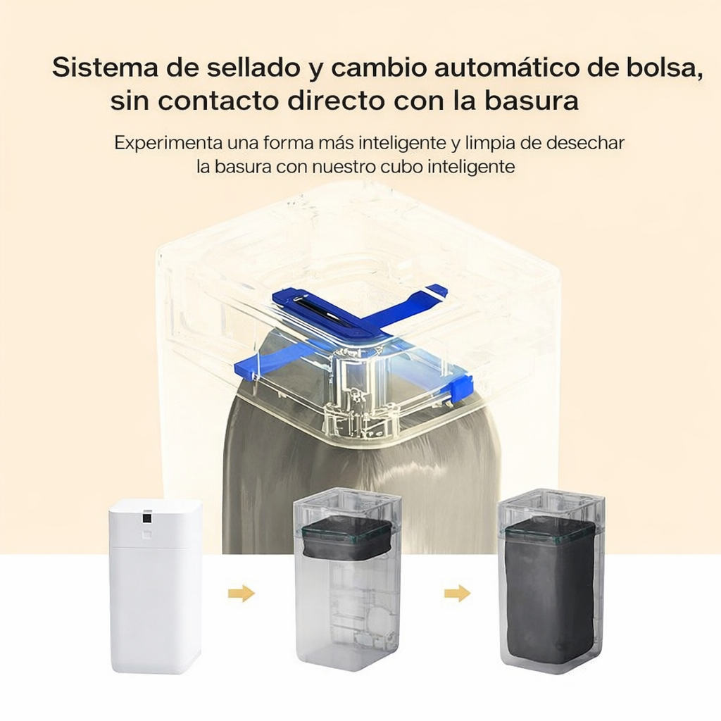 Después de retirar la bolsa llena, el basurero coloca automáticamente una nueva bolsa, evitando tener que cambiarla manualmente y ahorrando tiempo.